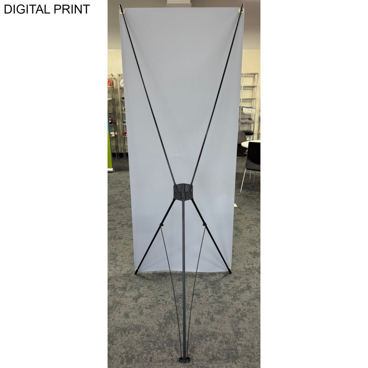 - Trade Show Package, Econo Tripod or X-Banner with graphics (DP788) + Sublimated Tablecover for 6' table, 3 sided open back (SU499)